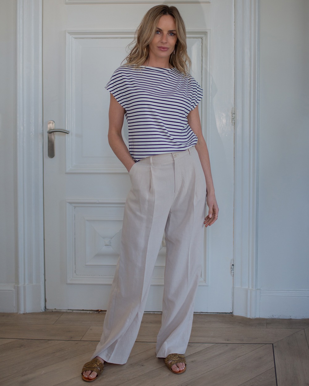 De Caen top is een stijlvolle essential met een tijdloze uitstraling. Gemaakt van zachte viscose met stretch, biedt deze top ultiem draagcomfort en een flatterende pasvorm. De fijne strepen zorgen voor een subtiele, moderne touch, terwijl de kap mouw het ontwerp een verfijnde en speelse twist geeft. Perfect te combineren met een wijde pantalon voor een elegante look of met een leuke short voor een meer casual feel. De Caen is veelzijdig, moeiteloos chic en een must-have in elke garderobe.