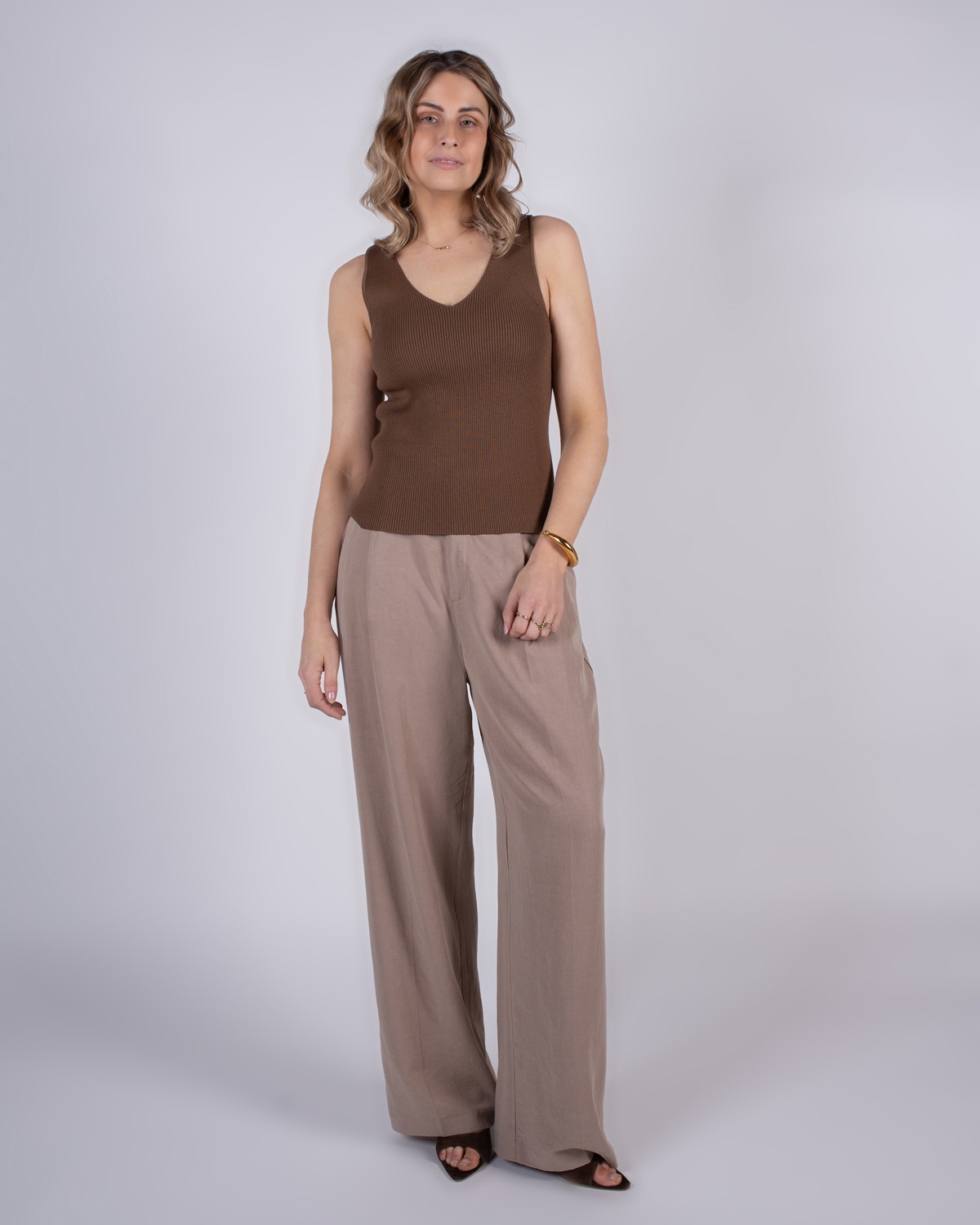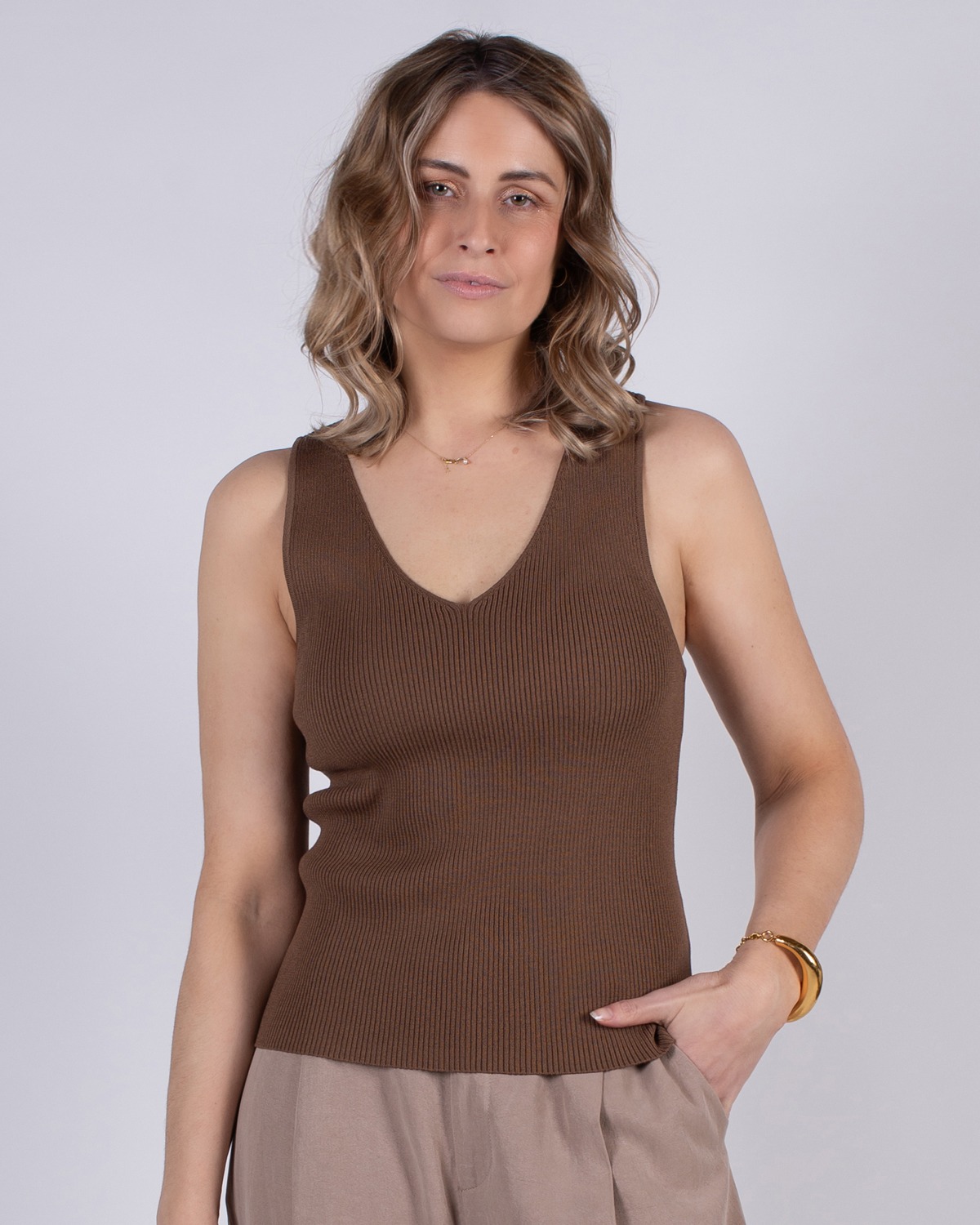 Dames gebreide mouwloze top brown – SERRES