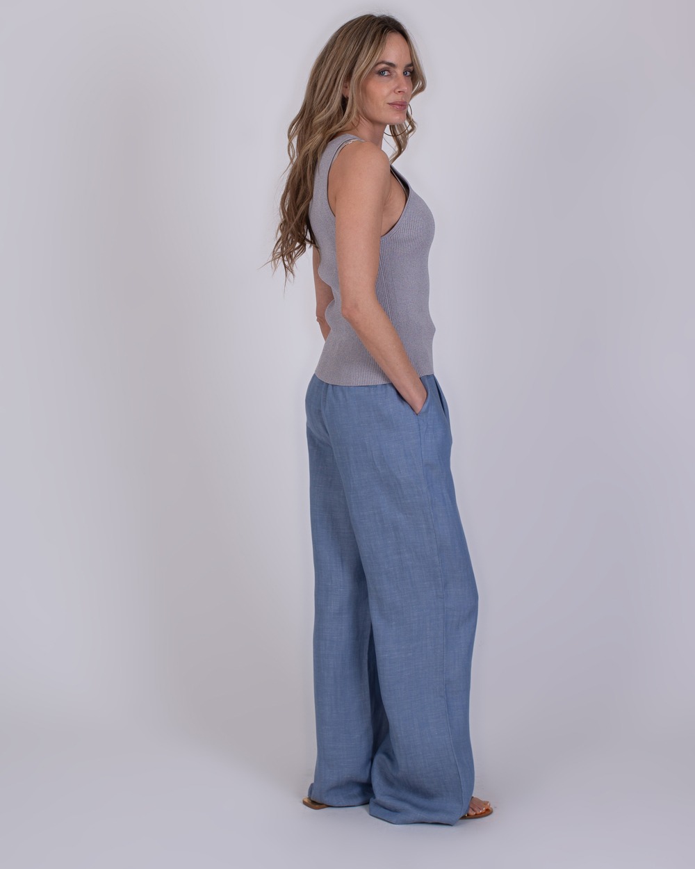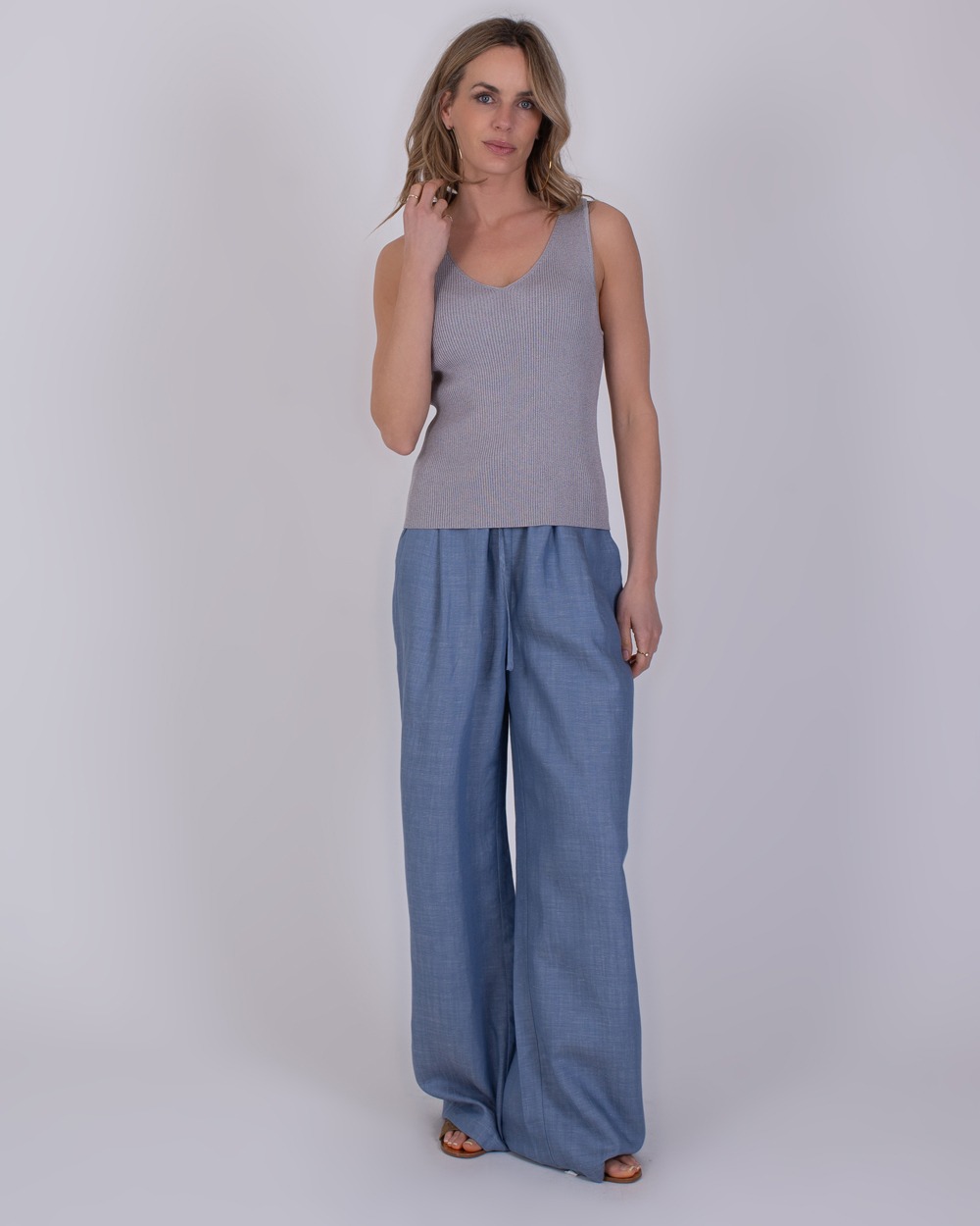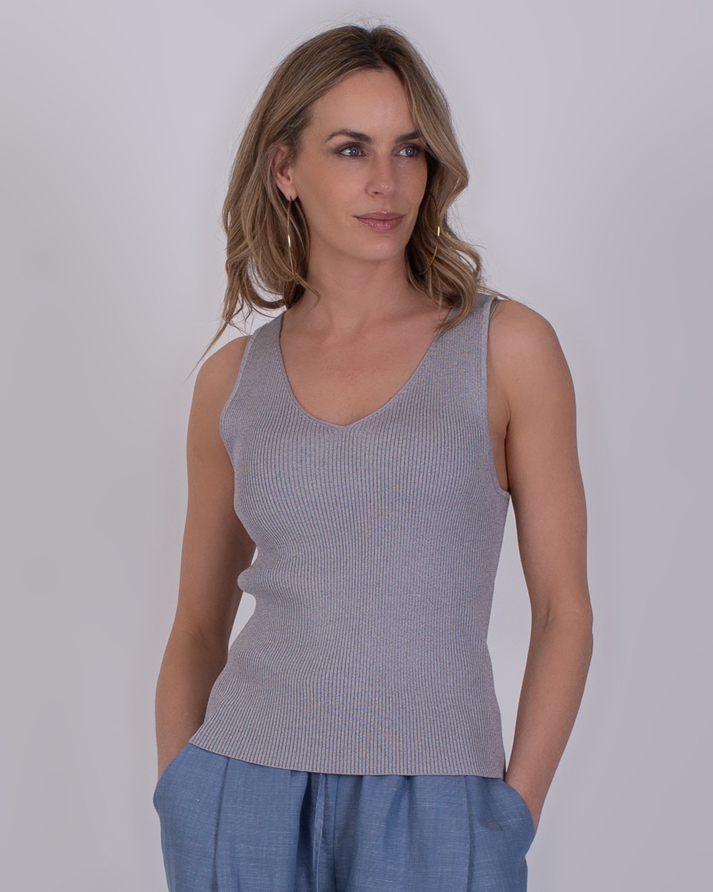 De zachte, gebreide structuur voelt prettig aan op de huid en maakt deze top ideaal voor dagelijks gebruik. Perfect om los te dragen op warme dagen of te combineren met een vest of blazer voor een gelaagde outfit. Een veelzijdige basic die comfort en stijl moeiteloos samenbrengt.