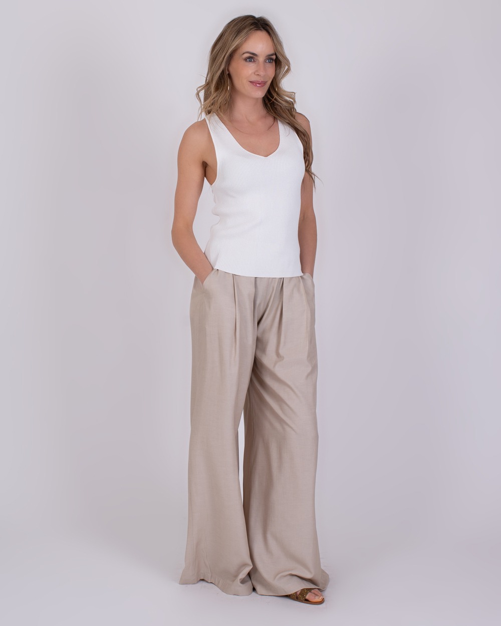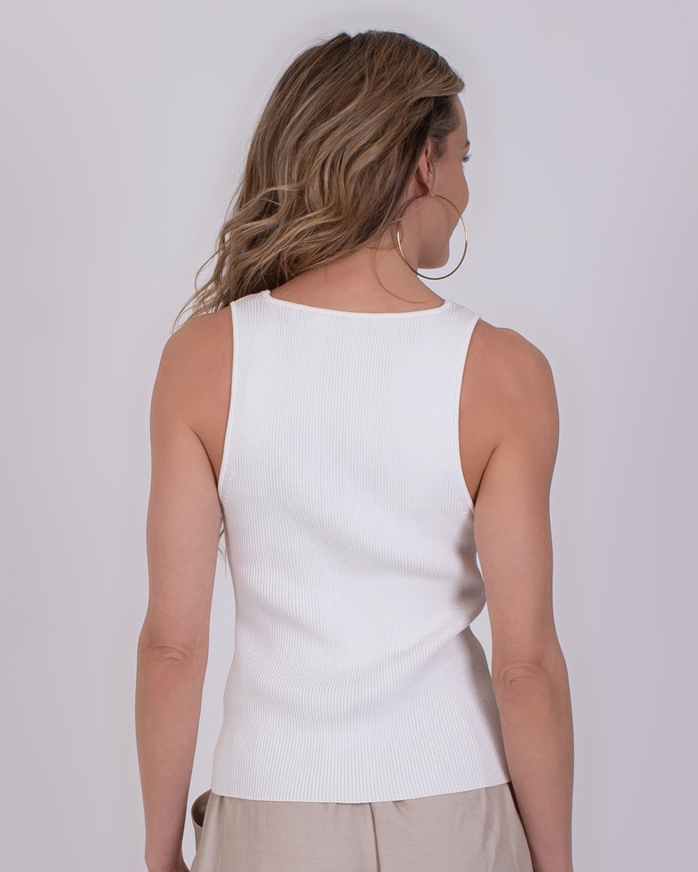De zachte, gebreide structuur voelt prettig aan op de huid en maakt deze top ideaal voor dagelijks gebruik. Perfect om los te dragen op warme dagen of te combineren met een vest of blazer voor een gelaagde outfit. Een veelzijdige basic die comfort en stijl moeiteloos samenbrengt.