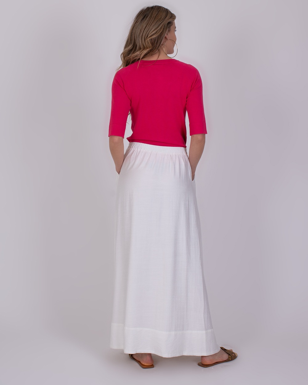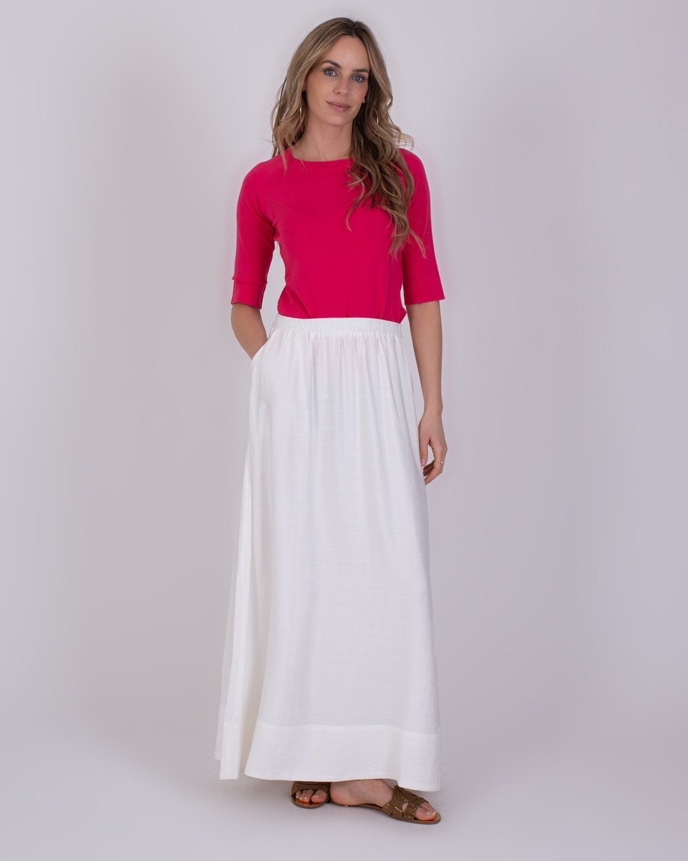 Rok Altos is een luchtige, zomerse rok gemaakt van een soepele mix van viscose en polyamide. De lichte stof valt mooi en voelt comfortabel aan, ideaal voor warme dagen. Met haar frisse uitstraling en flatterende pasvorm is Altos perfect voor een casual dagje uit of een stijlvolle zomeravond.