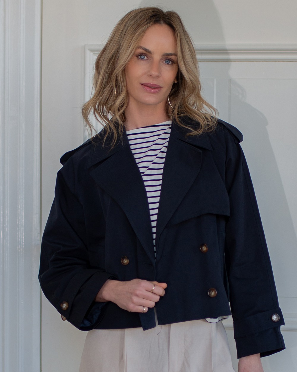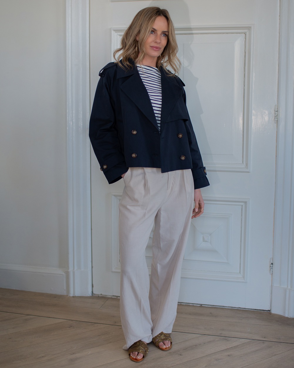 De Aosta trenchcoat is een kort model van cotton met een tijdloos, elegant silhouet