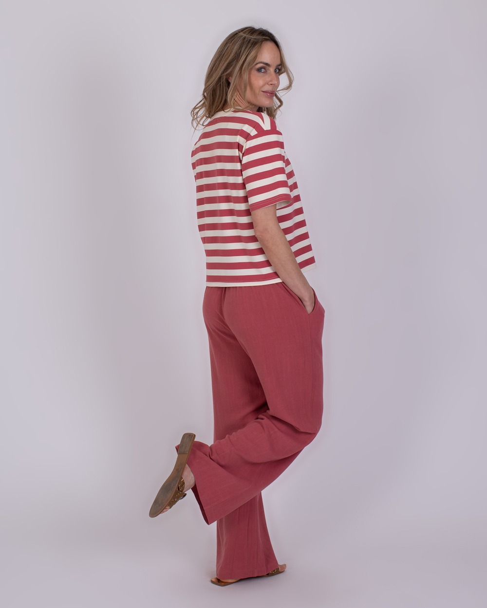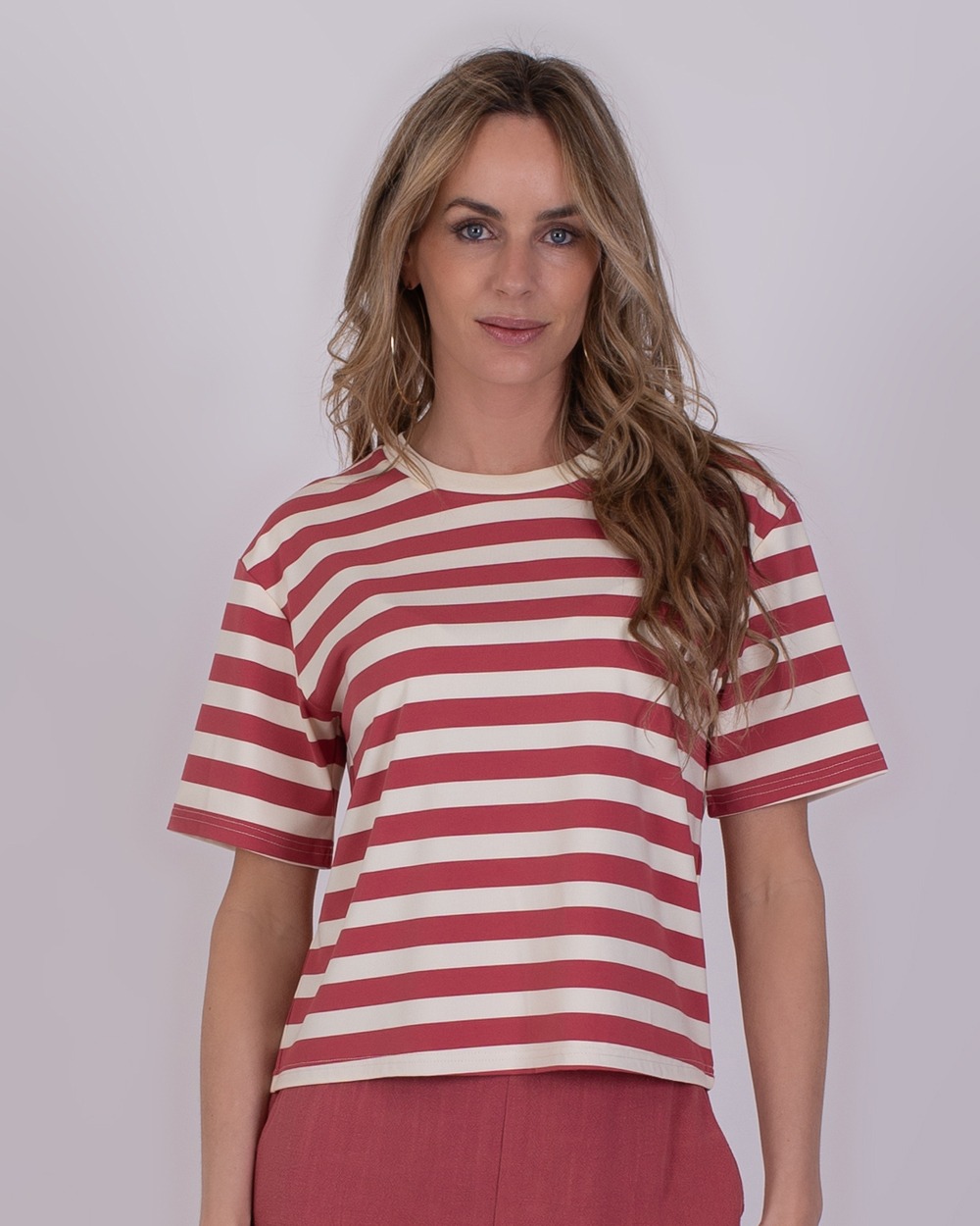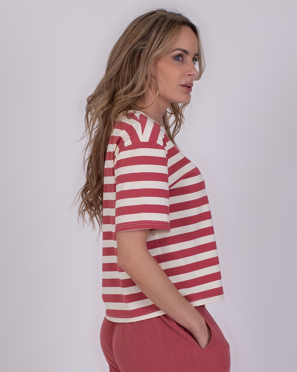 Dames trui fuchsia-offwhite stripe cotton – LARISA